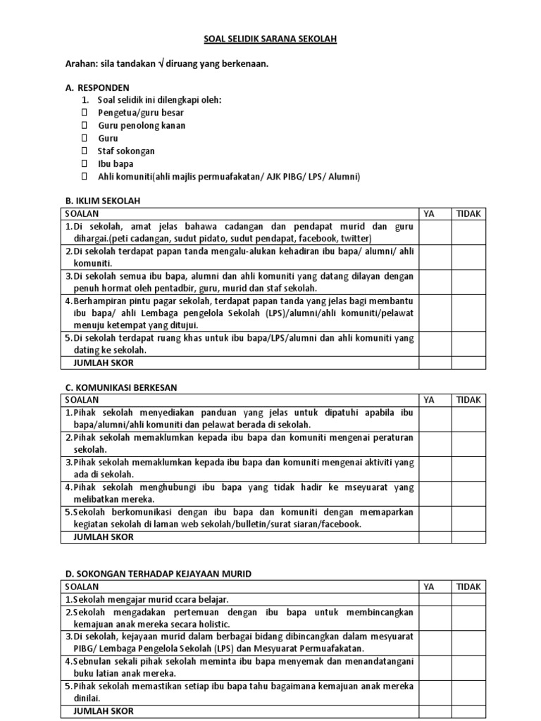 Borang Soal Selidik Masalah Murid Datang Pdf