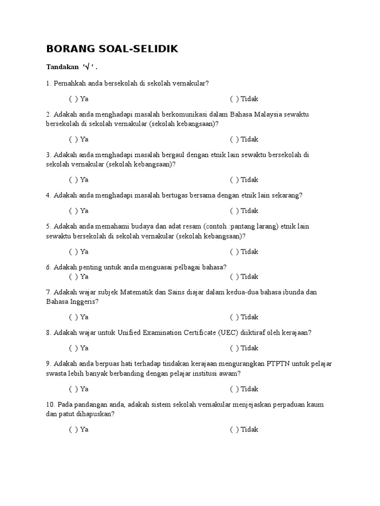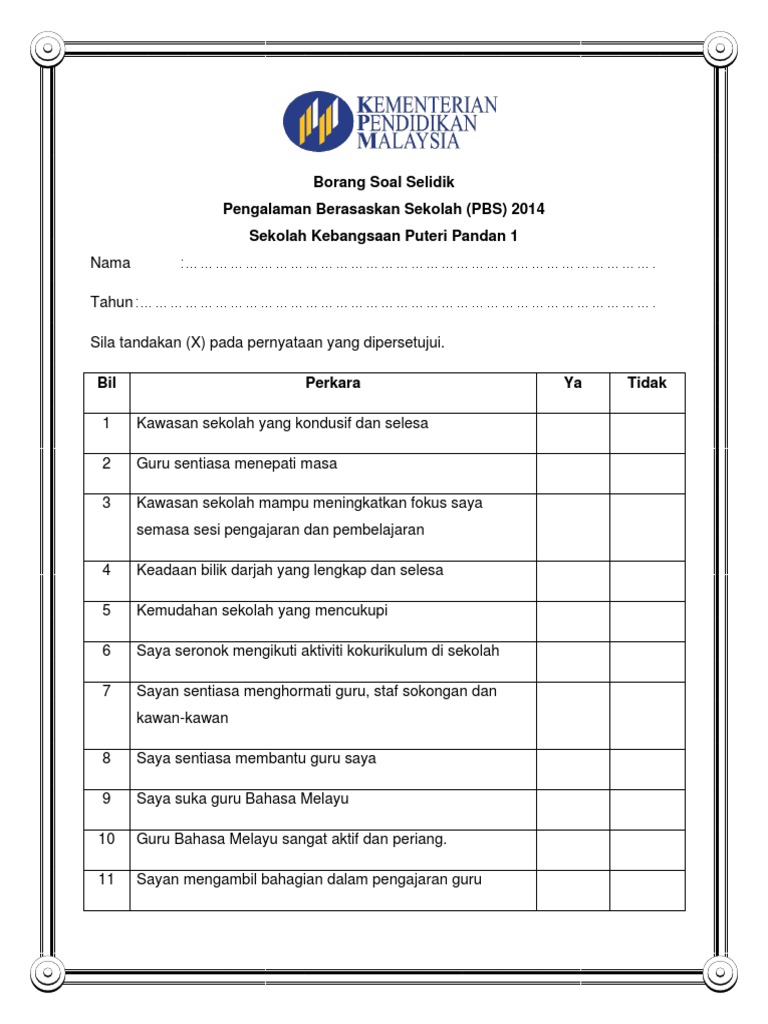 Contoh Soalan Kaji Selidik Untuk Pelajar Selangor E Otosection